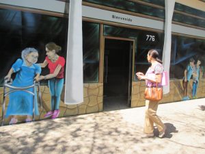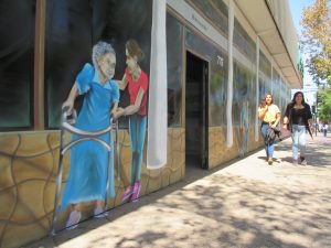 Lo que fue el estallido social a nivel local y, posteriormente, la protección metálica del comercio han sido rostros de una misma moneda que ha ido transformando la apariencia del comercio de la comuna, tapizando puertas de ingreso y grandes muros de vidrios, con estructuras de fierro y planchas de acero. Sin embargo, desde hace algunas semanas la Cooperativa de Ahorro y Crédito de Talagante, Coocretal, comenzó a desarrollar un proyecto destinado a humanizar la estructura gris metal que cubre hoy día la entidad.