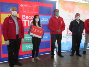 Con una serie de medidas de tipo sanitarias para evitar el contagio de COVID-19, padres o apoderados de 277 estudiantes de establecimientos municipales y particulares subvencionados de El Monte, recibieron los computadores donados a sus hijos o pupilos por parte del Ministerio de Educación, a través de la Junta Nacional de Auxilio Escolar y Becas (JUNAEB), en el Liceo Luis Humberto Acosta Gay.