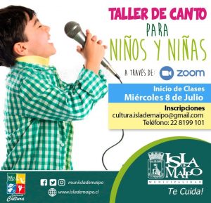 Con la finalidad de recrear, enseñar y aportar a niños y niñas participantes sobre los múltiples beneficios relacionados con el bienestar físico y mental a través del arte de cantar, el departamento de cultura de la Municipalidad de Isla de Maipo ofrece un taller de canto para niños y niñas.