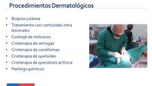 procedimiento quirúrgico, los cuales todos se resuelven en el Hospital de Talagante, incluso están las horas de un cirujano oncólogo, quien apoya al equipo de tres dermatólogos que estamos y de esa manera entonces prácticamente la posibilidad de derivar al Hospital San Juan de Dios es muy escasa”, precisó el Doctor Héctor Fuenzalida.