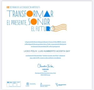 El proyecto se desarrollo en el marco de IX Semana de la Educación Artística desarrollada entre mayo y octubre de 2021 y que concluyó con el reconocimiento de UNESCO a la participación de los niños, jóvenes y padres del establecimiento municipal de El Monte recibido poco antes del término del año escolar 2021.  “Se trabaja durante dos trimestres y es un trabajo maravilloso, es una invitación a poder expresarnos desde los más pequeños incorporando a toda la comunidad de nuestro liceo”, acotó Jenny Fajardo, quien detalló el grado de participación que alcanzó el proyecto.