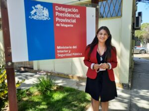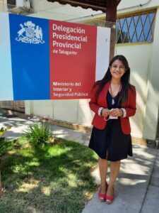 Al cabo de 9 meses, la también periodista se convirtió en la primera Delegada Presidencial Provincial de Talagante, ya que paralelamente a su arribo, también concluía la nomenclatura de gobernadores provinciales y se retrotrae a ese momento.  “Lo vivimos haciendo educación cívica porque en general a pesar de haber cambiado de nombre, de gobernadora a delegada, las funciones, el cargo, los desafíos, los objetivos que tiene este espacio, son los mismos, entonces, al principio hubo que hacer una difusión respecto de que el cargo tenía las mismas competencias”.