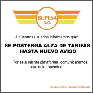 después del anuncio de Flota Talagante, la Flota BUPESA oficializa hoy en sus redes que tampoco realizará el alza de sus pasajes el 15 de diciembre, fecha que la empresa había fijado para hacerlo, hace algunas semanas en un comunicado”, comenzó señalando la Delegada Presidencial Stephanie Duarte, autoridad que ha estado trabajando conjuntamente con las autoridades ministeriales en esta materia.