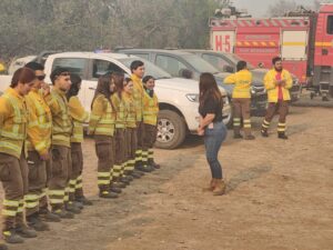 Desde primeras horas de la mañana de ayer, la Delegada Presidencial de la provincia de Talagante, Stephanie Duarte, se constituyó en Curacaví para supervisar las labores de extinción del vasto incendio forestal que afecta a un sector rural de esa comuna, en su calidad de subrogante de su colega de la provincia de Melipilla. En la ocasión, la máxima autoridad de las provincias de Talagante y Melipilla en este momento entregó detalles de la situación de este incendio forestal, al mediodía de ayer.