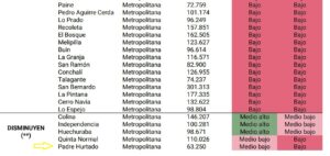 “Tenemos que darle cierta importancia y debemos prestar, al menos, atención con respecto a estos factores, porque si bien es cierto hay dos comunas que están en el nivel Bajo, Padre Hurtado desciende de Medio Bajo al nivel Bajo”, admitió el concejal, quien estima que los factores que dan cuenta del hecho son múltiples y no se puede hablar exclusivamente de una causalidad. “Creo que desde el estallido social, la pandemia, y la cantidad de densidad poblacional