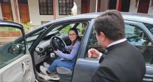 “La verdad que es mi primer carro y, la verdad, no lo puedo creer, estoy muy emocionada, porque un primer carro es una emoción”, dijo con sinceridad y feliz Virginia al Padre Gustavo Aravena. Más adelante, la joven vecina compartió que compró el boleto ganador durante la celebración de Fiestas Patrias, en el sitio de la Fiesta de la Chilenidad, donde la parroquia Inmaculada Concepción tuvo un espacio para continuar con la promoción y venta de números de rifa.
