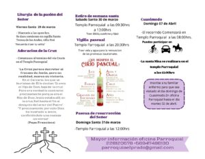 09:30 a 13:00 hrs. Retiro de Semana Santa (traer biblia, cuaderno y lápiz)