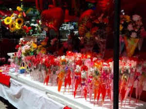 Artesanías diversas, bisutería, chocolates, plantas, y distintos artículos propios de un 14 de febrero se encuentran en el anillo central de la Plaza de Armas de Talagante, además de un par de puestos de bebestibles y comestibles para asegurar que el interesado, ambas personas o la familia completa puedan compartir este momento.