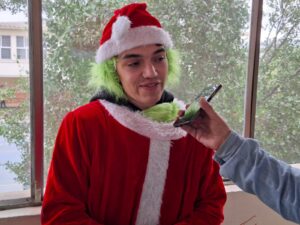 “Dentro de todo el Grinch, es un personaje que me gusta, bueno, a mí en lo personal, es de mis favoritos de las películas navideñas, el Grinch es de mis personajes favoritos y me gusta su humor, su personificación, entonces dije ya, el Grinch. Aparte, igual, para qué estamos con cosas, a todos nos da lata ser vocal de mesa y entonces dije ya, el Grinch”, sostuvo Diego Prieto, quien comentó, a dos horas de iniciada la jornada eleccionaria, que su opción fue bastante bien recibida por las personas que concurrían a sufragar a la mesa 136.