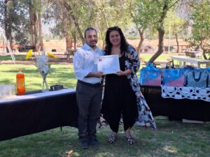 Tamara Vega, agente de desarrollo local de este programa de Fosis en la provincia de Talagante entregó detalles de la participación de estas vecinas y vecinos de la comuna. “El Sindicato de Trabajadores Independientes de Macam, de acá de la comuna de Talagante, se adjudicó un proyecto grupal con un monto de financiamiento de 5 millones de pesos. Ellos postularon y se adjudicaron en el año 2025 y hoy estamos entregando la certificación del proyecto”, resumió la agente.